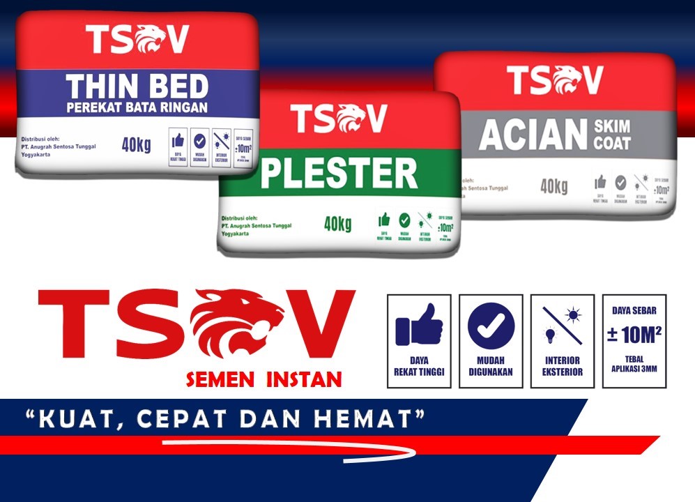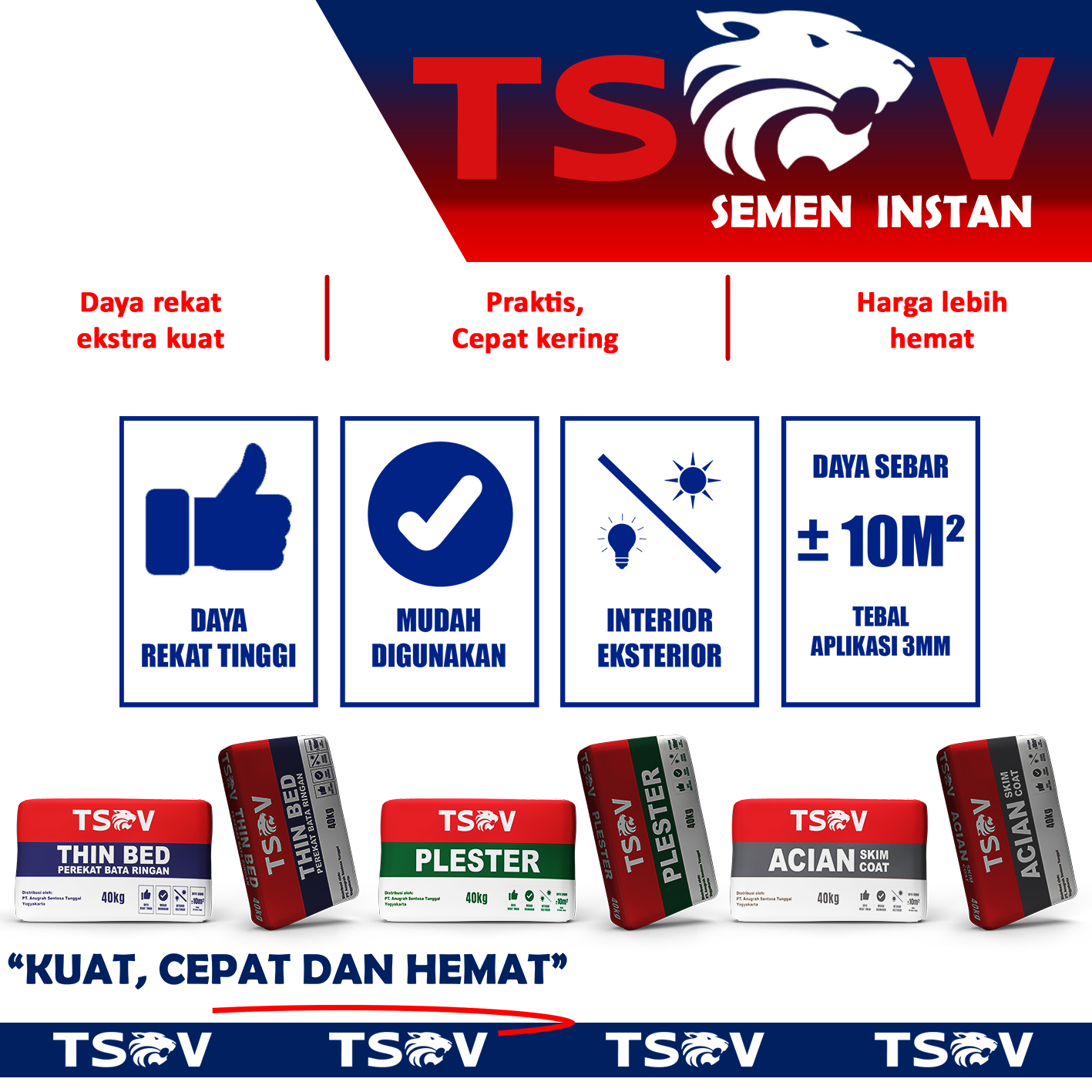 Semen instan TSOV ini sangat mudah digunakan, lebih menghemat waktu karena dapat mengering lebih cepat dan tentunya dengan isi kemasan yang sama namun harganya jauh lebih terjangkau.